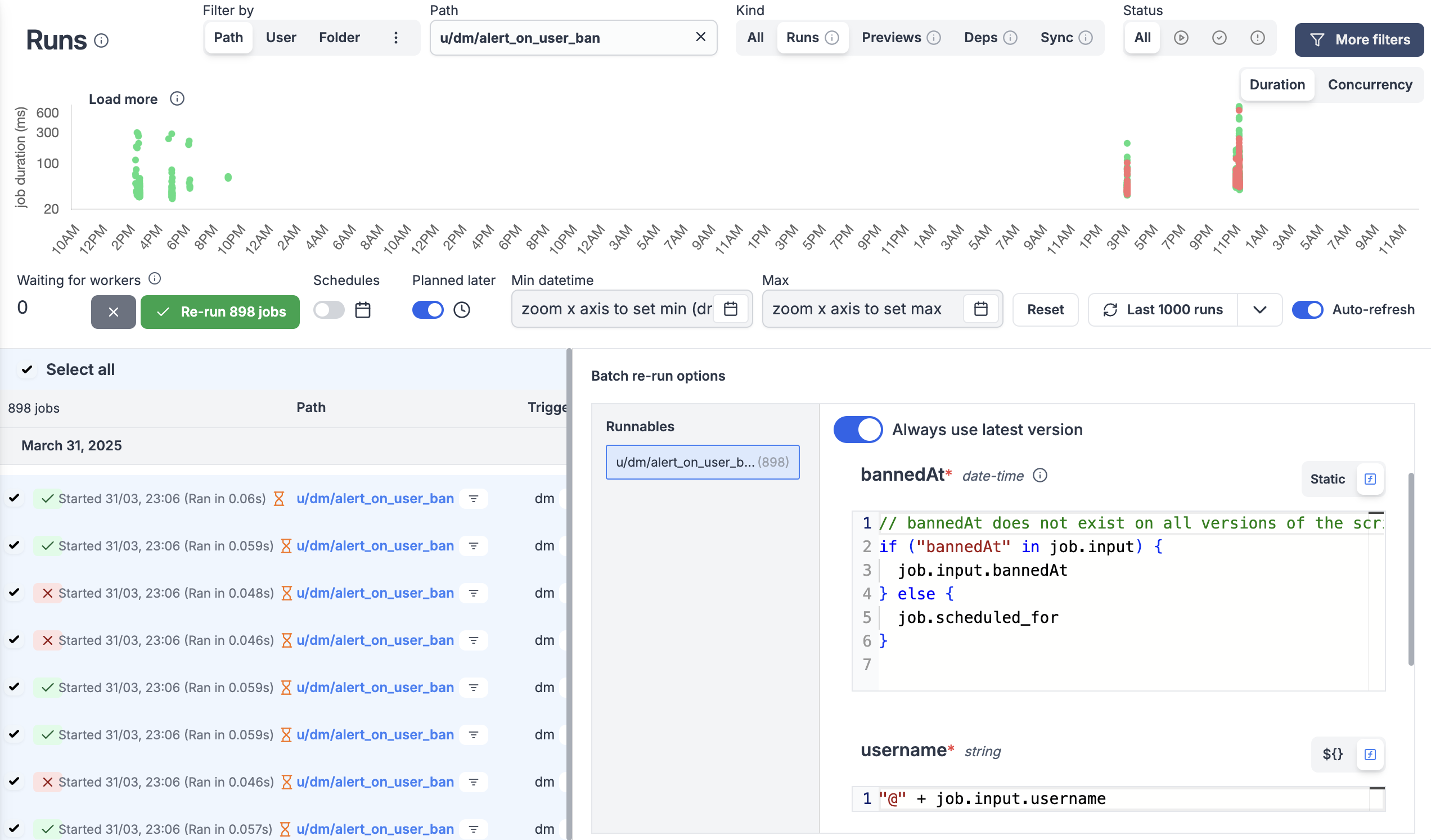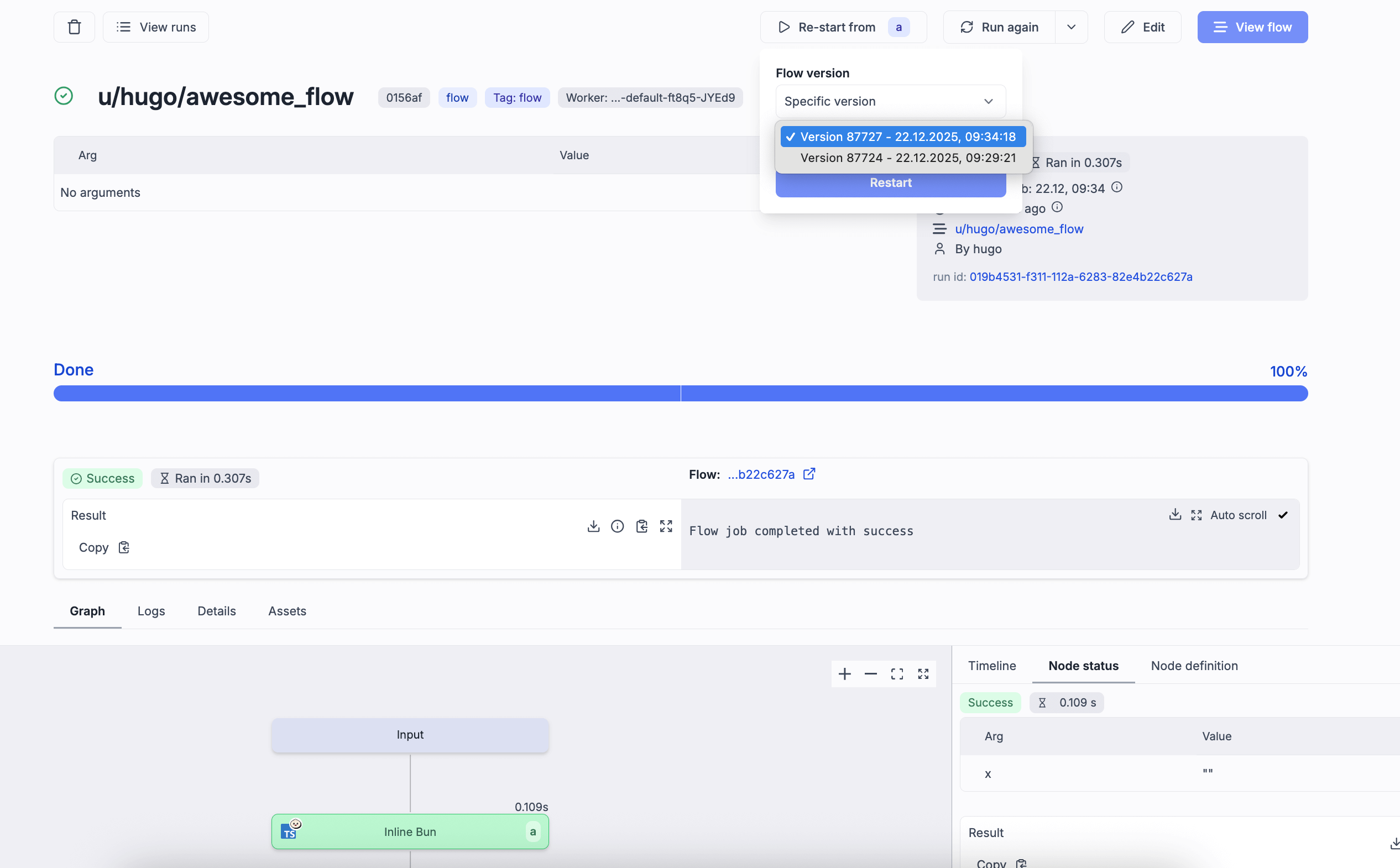 Flow expressions (input transforms, branch predicates, for-loop iterators) can now be evaluated with QuickJS, a lightweight JS engine with 8-16x faster startup for simple expressions. Default on Community Edition; opt-in on Enterprise Edition via USE_QUICKJS_FOR_FLOW_EVAL.
