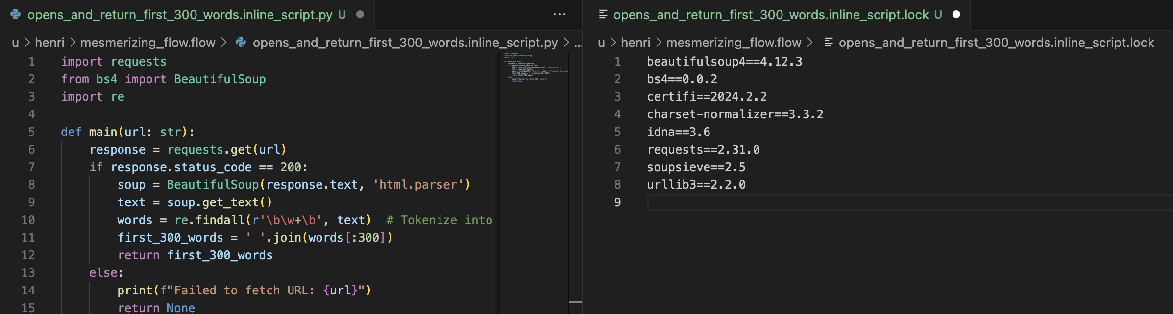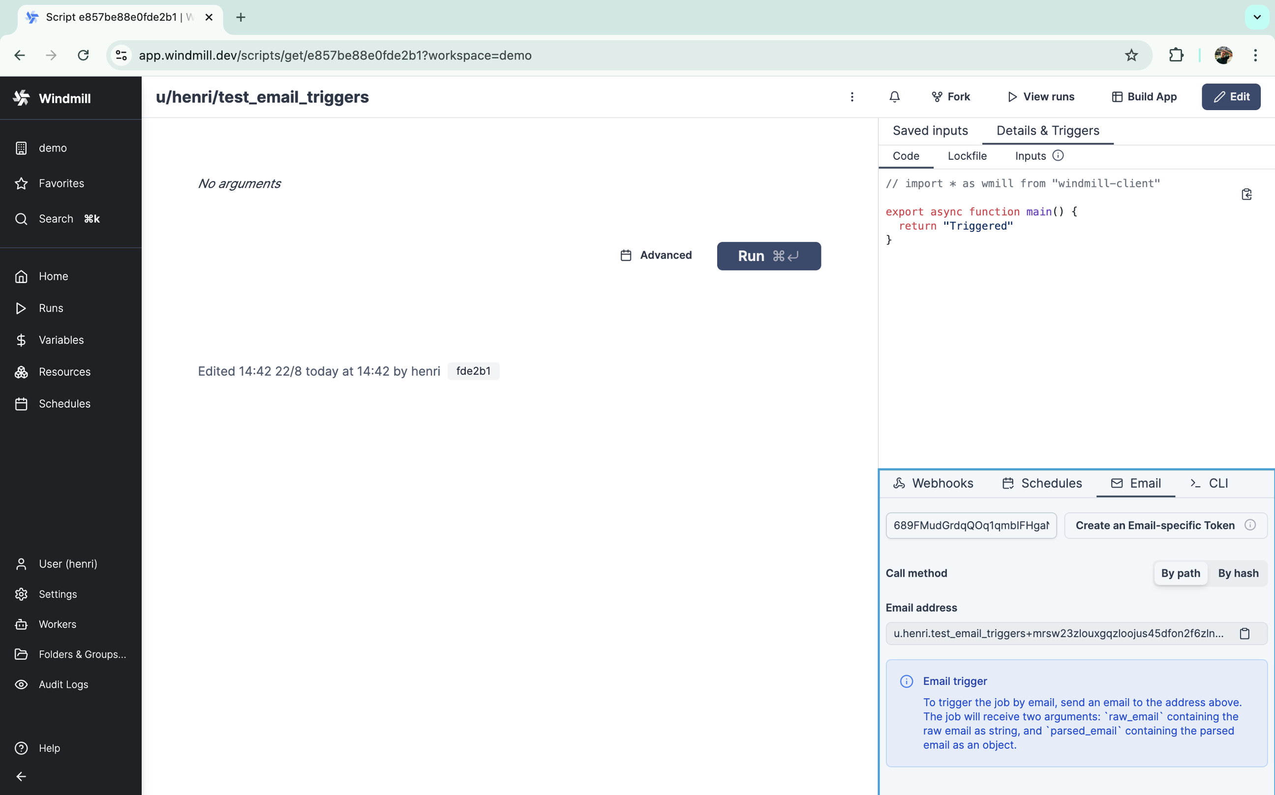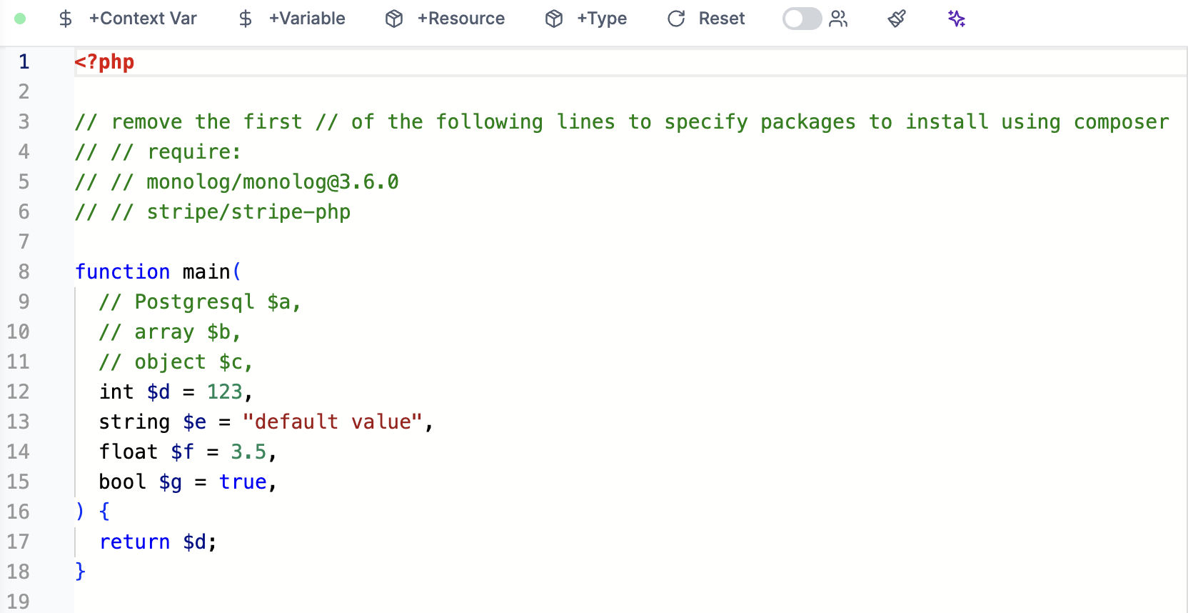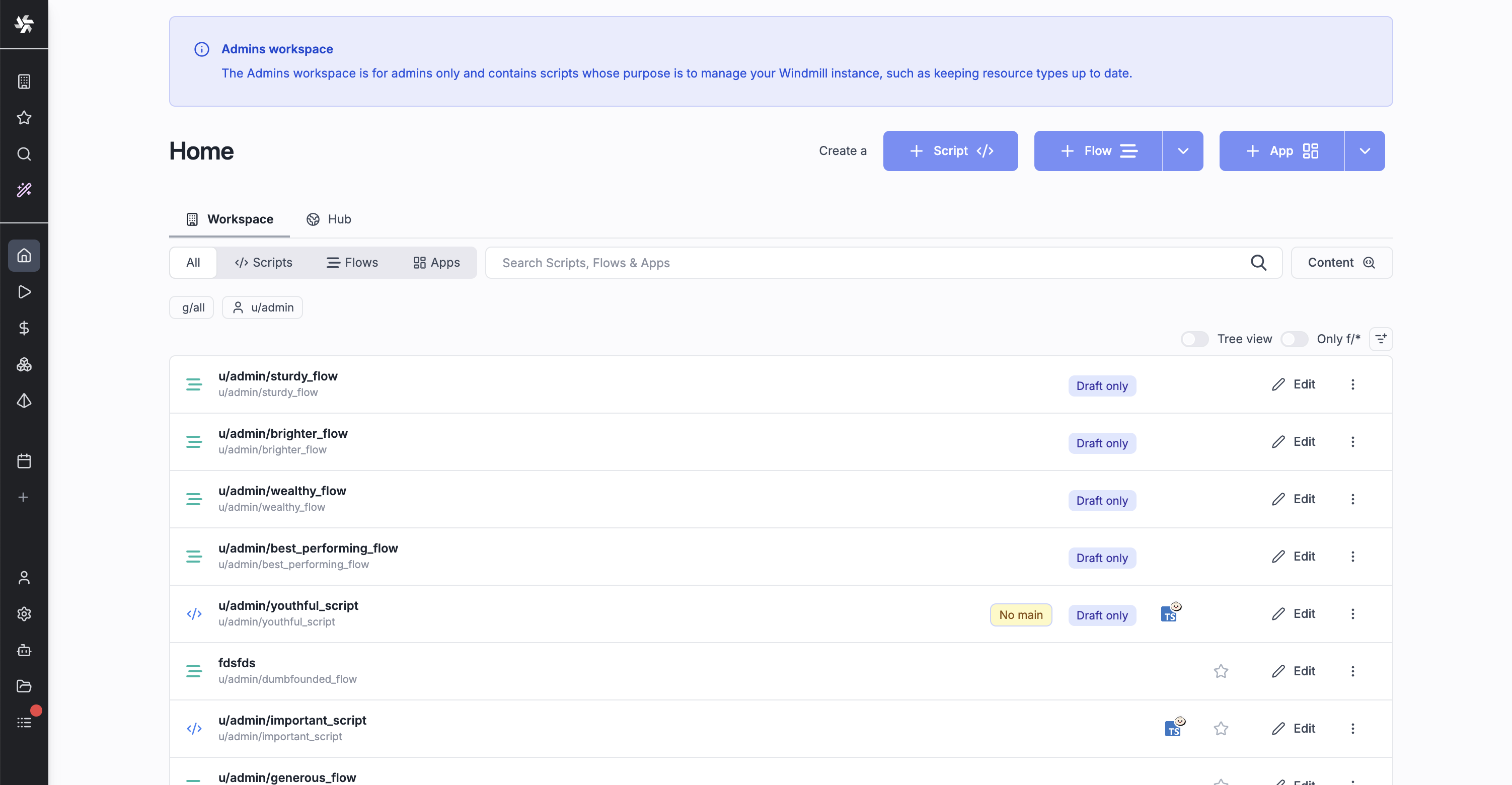 • Volumes: persistent file storage attached to scripts via comment annotations, synced to workspace object storage.